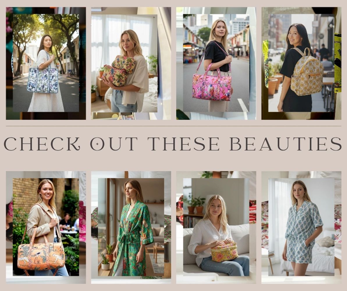 Welcome to Quilted Statements, where artistry meets sustainability. We offer a curated collection of exquisite organic cotton block-print quilted bags and breathable 60 /60 cambric organic cotton loungewear, designed to bring joy and style to your everyday life.